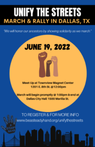 In the coming weeks, more details will emerge about the days’ event including march/street route, water stations, Dallas City Hall speakers and more!